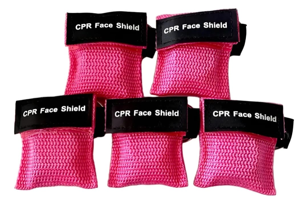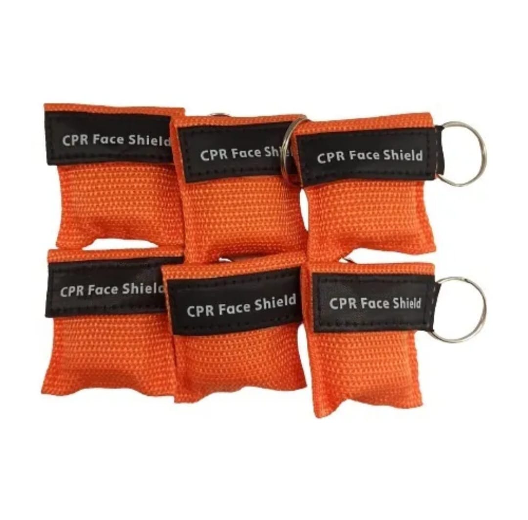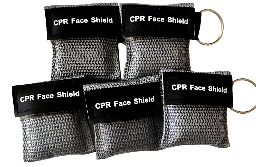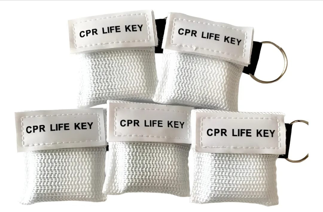 La máscara de CPR se empaqueta en una bolsa de llavero.