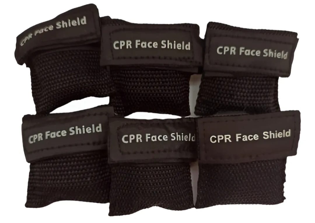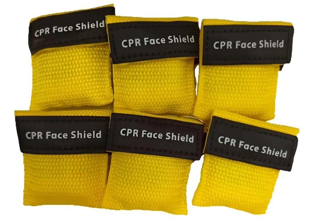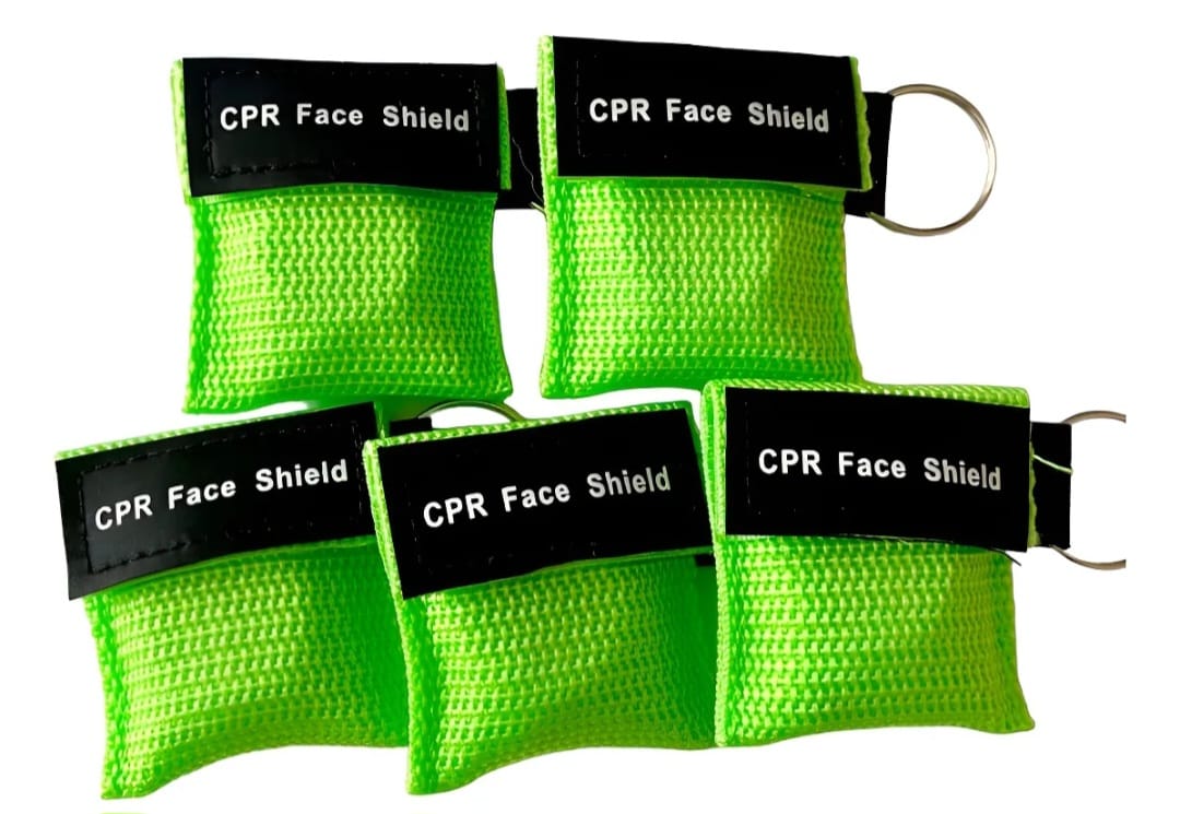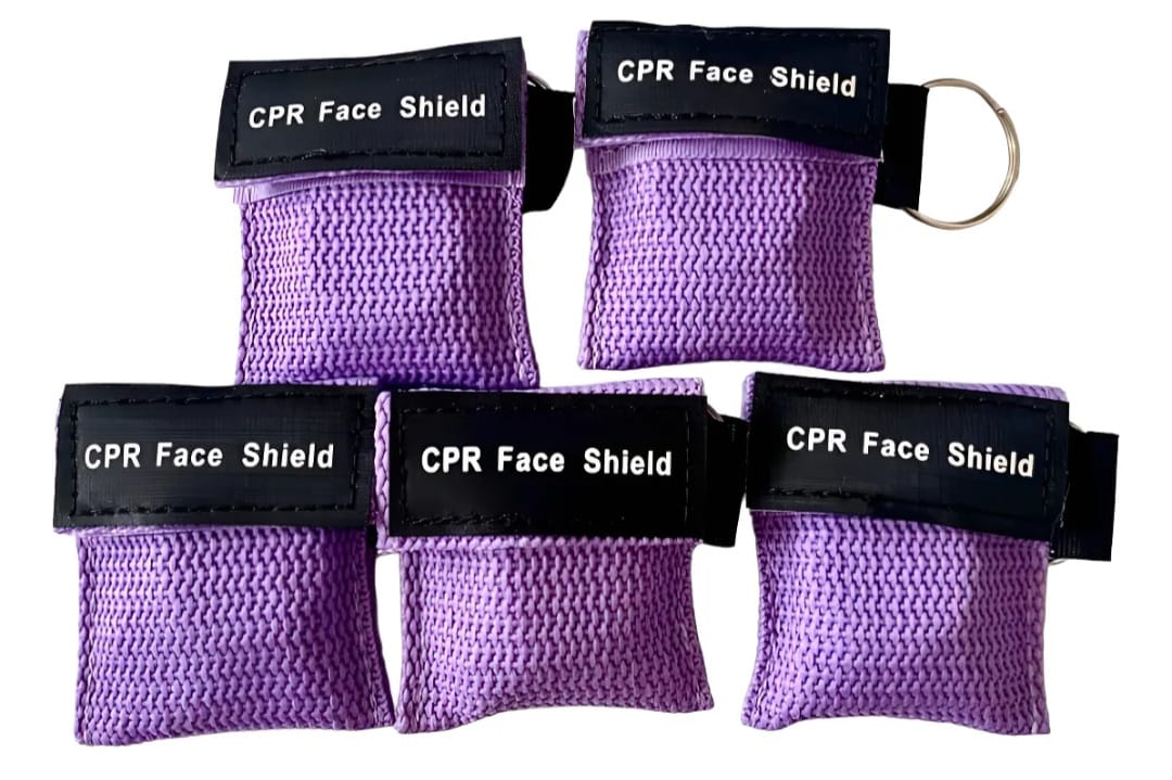 La máscara de CPR se empaqueta en una bolsa de llavero.